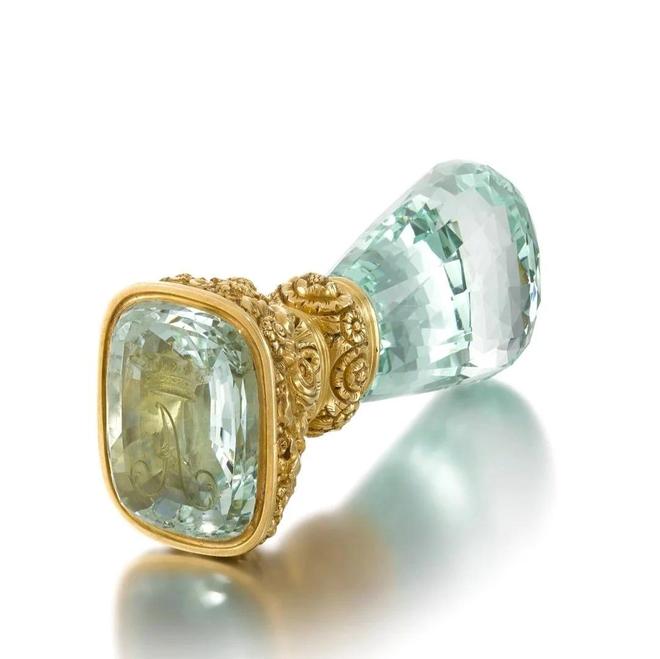 像这样一枚大型的多面切割海蓝宝石印章就诞生于1845年,上面刻有英国贵族亨利·佩吉特的纹章。即使以现在的眼光来看,依旧美到了心坎上。