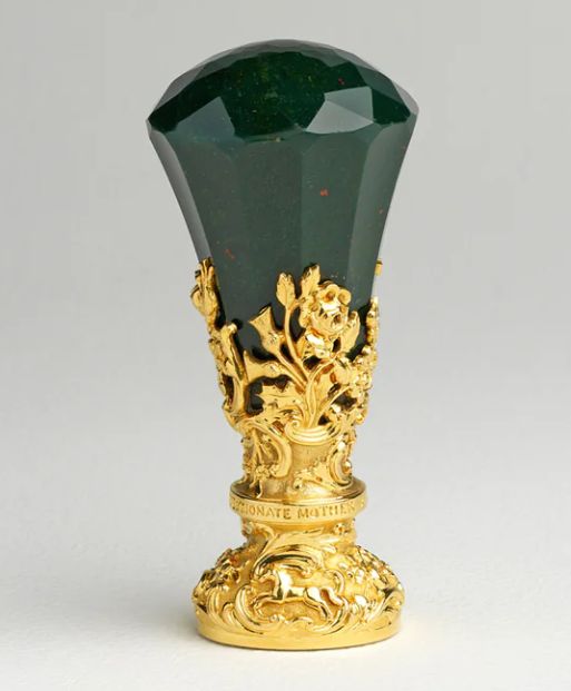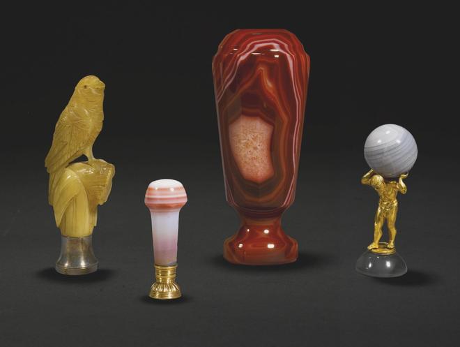例如19世纪20年代乔治四世时期的一款桌面章,就以刻面青金石为柄,配以金饰底座,彰显持有者的高贵地位。
