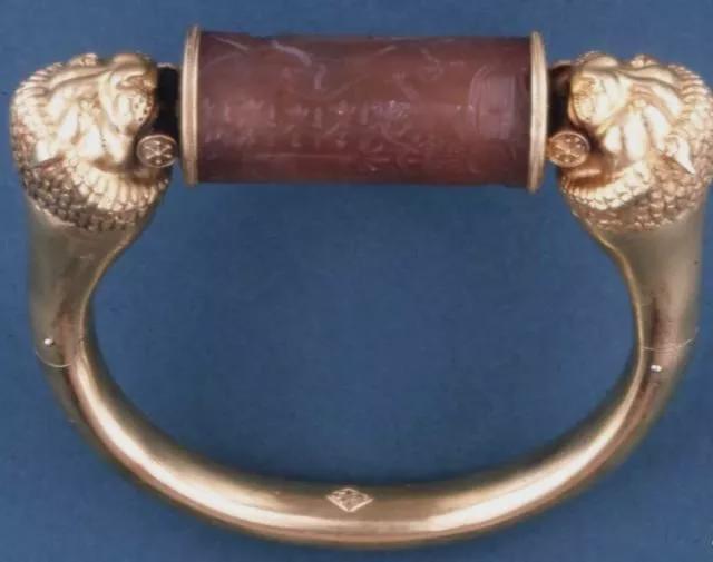 于是,印章戒指开始崛起,慢慢取代滚筒印章,成了新的“主流款”。它的设计很简单:把宝石印面镶嵌在黄金、白银做的戒托上,戴在手指上,随时随地都能拿下来用,堪称古代的“便携式印章”,也被西方人看作是“人格的延伸”,算是最早的个人法定印章。