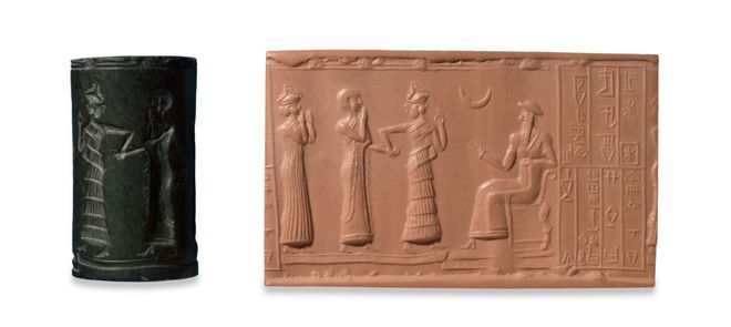 滚筒印章被视为国外宝石印章的源头,也是目前所知世界上最早的印章形式。它大约出现在公元前3400年的两河流域苏美尔文明,比中国成熟的印章体系早了近两千年。