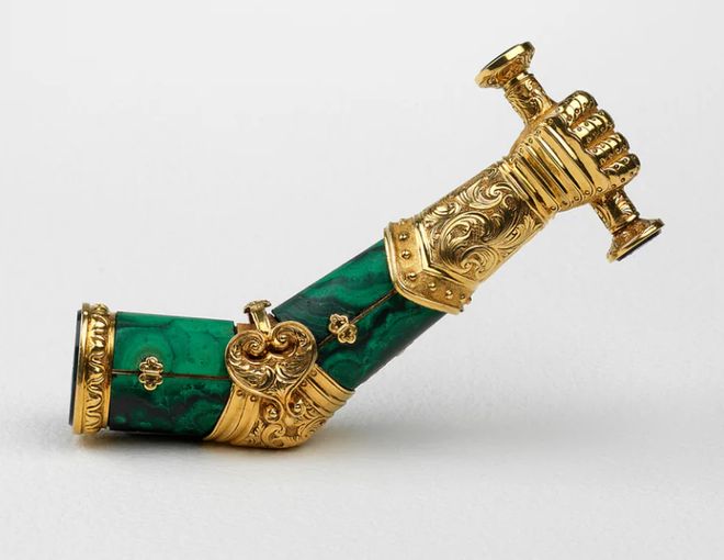 19世纪还流行过“握拳形”手柄(Clenched Fist),由整块象牙或宝石雕刻而成,甚至拳头的小指上还刻有一个微小的印章戒指,展现了“章中之章”的趣味性。