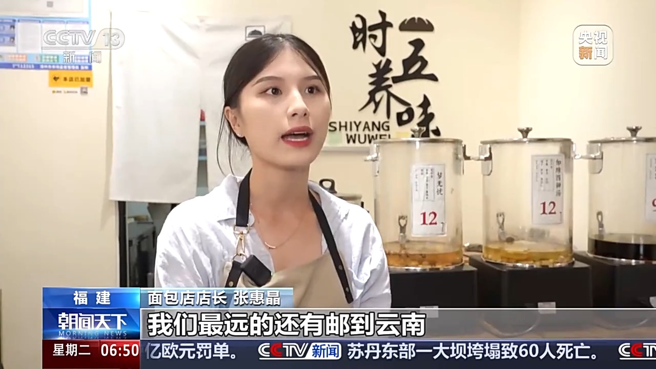 面包店店长 张惠晶:我们现在也有邮寄到一些像附近的县城、厦门、泉州,我们最远的还有邮到云南。这些养生面包其实还是很受年轻人喜欢的。