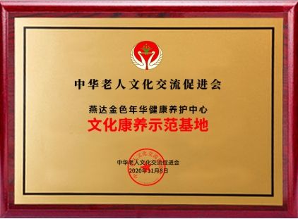 2020年11月,在2020年首届中华老人文化交流与老年教育高峰论坛中,燕达养护中心荣获“文化康养示范基地”称号。